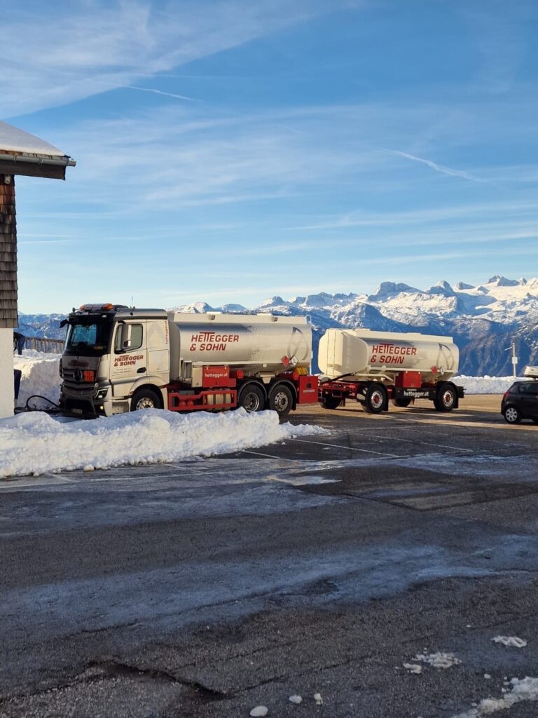 - Mercedes mit 460 PS starkem Euro 6d Common-Rail Motor wird als Solo-Fahrzeug zum Transport von OMV Vitatherm Heizöl ultra leicht für Ein- und Zweifamilienhäuser eingesetzt. Als 2-Achser ist er für Zufahrten mit schmalen Straßen geeignet.